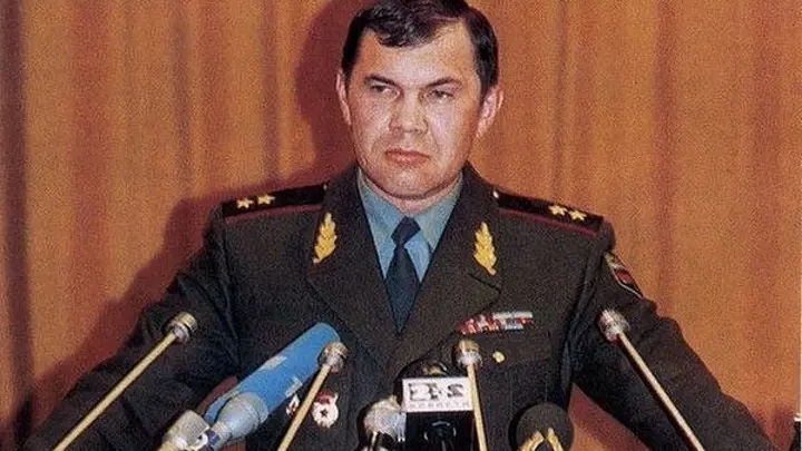 Владимир Жириновский, Александр «Чача» Иванов («НАИВ»), справа Александр Минаев (он же Акакий Назарыч Зирнбирнштейн, «Тайм-Аут»), из-за плеча Жириновского выглядывает Валерий Ефремов (барабанщик «Машины времени»)