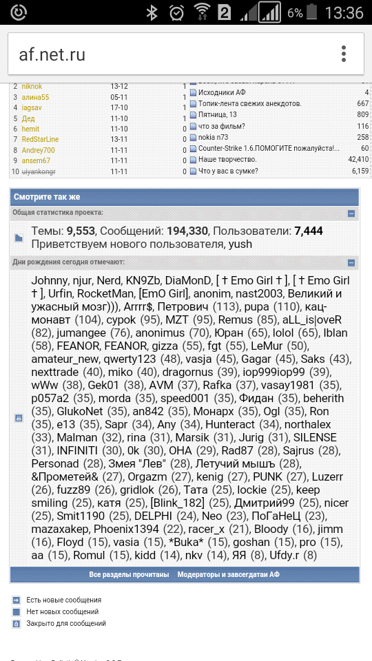 сижу значит за компом и вспомнился вдруг форум , решил посмотреть, работает аль нет.