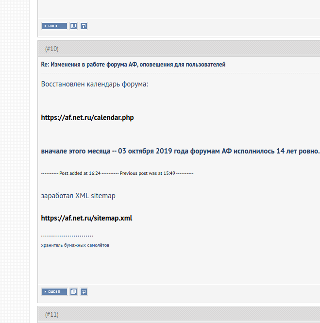вначале этого месяца -- 03 октября 2019 года форумам АФ исполнилось 14 лет ровно.