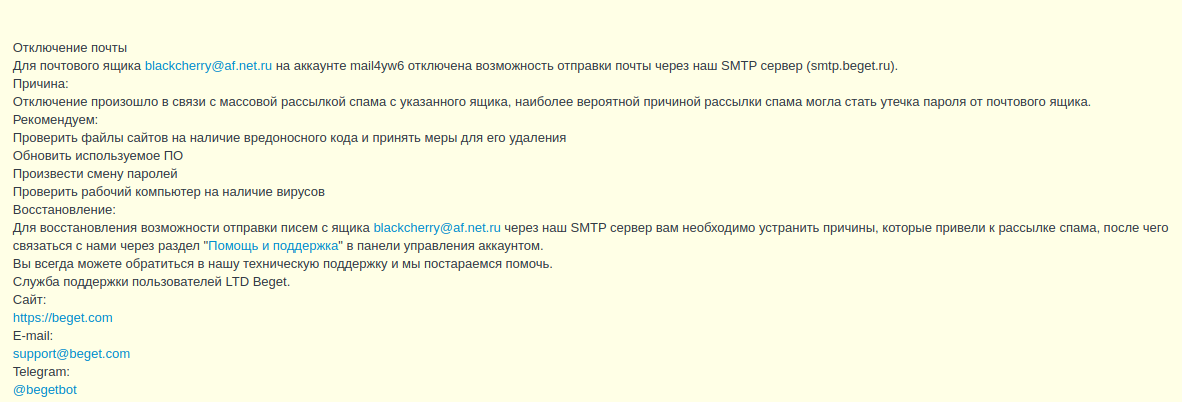 Сегодня пришло письмо от хостера, почта пока не работает судя по всему