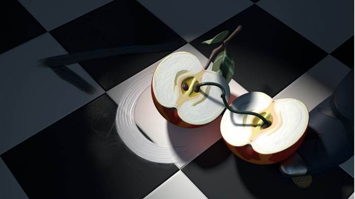 Возможно то, что она позволяет яблоку укатиться от себя, означает то, что она делится этими знаниями, а не держит их в себе. Яблоко катится по полу к ногам президента Обамы и как-бы расщепляется пополам возле его туфли. Из двух половинок яблок, из двух противоположностей, прорастает Цветок Жизни и распускает свой бутон. Это заставляет президента вспотеть, потому что он знает, что истина делает народ свободным и это именно то, что они пытаются от нас скрыть.