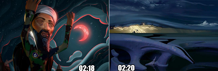 Кружащийся суфийский дервиш, одноглазый мальчик, совершающий ритуальное суфийское кружение, практикуемое дервишами из ордена Мевлеви. Скелет продолжает играть симфонию коррупции (The Symphony of Corruption), которая у него неплохо получается, прямо над ним нависает раненная Аали, воплощение ислама. Heliofant говорят об Аали: «Бурное сердце ислама пробуждает веру в единого истинного Бога, он свободен и не требует контроля». Возможно, после смерти его религии он свободен от границ. Ничего не ограничивает его, даже религия, которую он считал столь полезной. Нет ничего, что может остановить его на пути к личной свободе. Воскрешение мусульманского мальчика в качестве кружащегося дервиша сигнализирует о том, что существует связь между ним и внутренним Христом, он обрел контакт с божественным через духовную инициацию. Другие религии также представлены в мультфильме, индуизм – через танцующего Шиву/Кали, Даосизм – через знаки инь/янь.