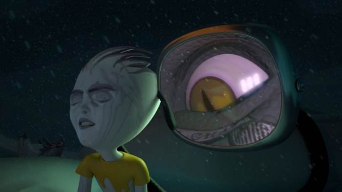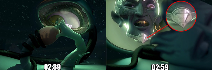 Есть версия, что рептильные руки в начале фильма и вот эта страшная рожа (персонаж по имени Драко) - это главарь мирового правительства Рокфеллер, у него даже схожи черты с мультперсонажем, смотрите сами. И это Рокфеллер управляет всем, что происходит сейчас на Земле, все войны, кризисы. И он в мозгах у всего человечества и диктует всем свой мировой порядок.