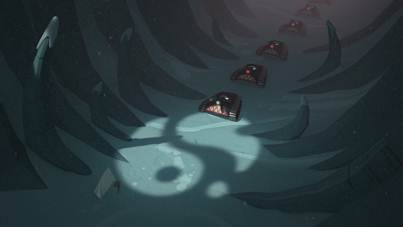 События на земле. Дух торгашества и материализма выстроен ровными шеренгами из корпоративных горе-менеджеров. Терракотовые воины, акулы с Wall Street, служащие умершему императору (догадайтесь кому).
